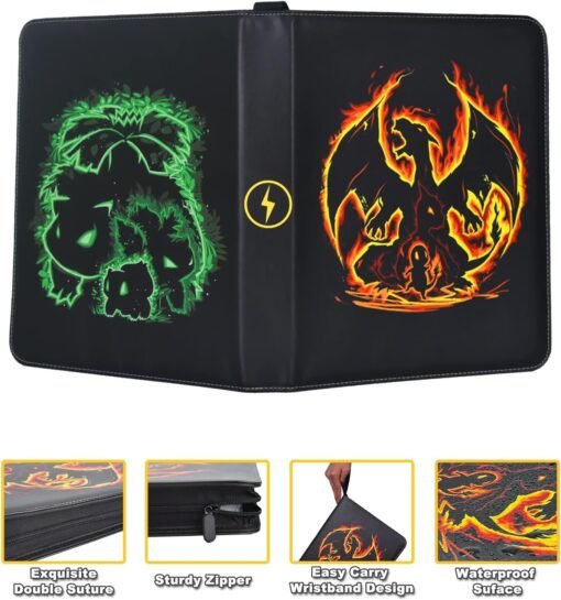 Pokemon Card Binder Cards Holder, Waterproof Trading Binders Fits 400/900 Cards Collection Albums, Portable Card Games Display Storage Cases, Charizard & Venusaur